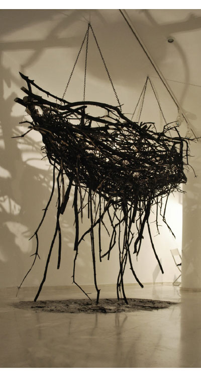 Installation 2011 Burnt branches, Chain, Wire, Screws 2000×1000×140mm