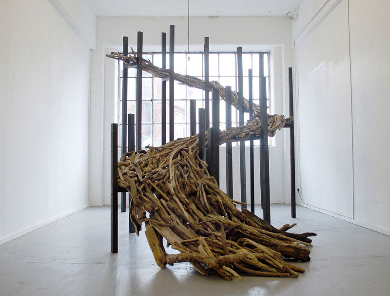 Installation 2013 Driftwood, Screws, Timbers, Light 3100×4400×2900mm